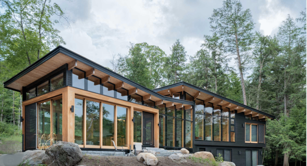 Shane’s cottage in the season finale is played by Barlochan Cottage, a glass box with timber and granite in Muskoka Lakes, Ontario.