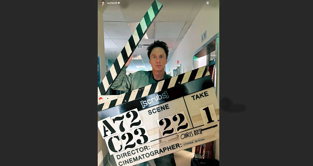 Scrubs star Zach Braff shares a giant slate from the revival series filming in Vancouver. The revival follows Dr. J.D. Dorian…