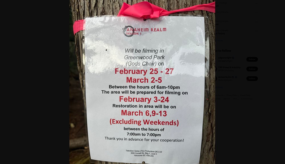 A local found the film notice. Anaheim Realm is the show’s working title