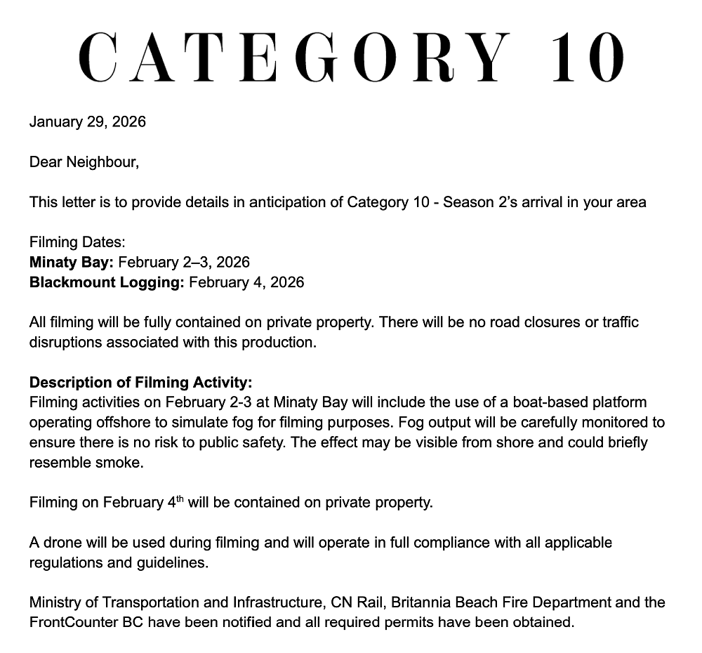 Shōgun season 2 has a large presence at Minaty Bay on the Sea to Sky Highway to Whistler — you can see their production signs CATGEORY 10. This is the location for the fishing village of Ajiro.