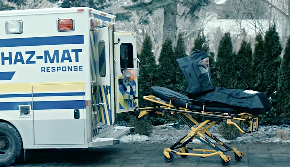 A sad Homelander next to his father’s corpse in a body bag.
